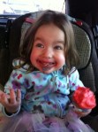 She looked at me a little funny, but she didn’t say anything. She certainly didn’t object. The goggles actually went on first, making it tough to execute the shirt phase in our daily dressing drama, and 2 minutes later she was at the table laughing, sucking back yogurt and just generally looking at life through rose-coloured goggles. When I left for work she was still wearing them.
